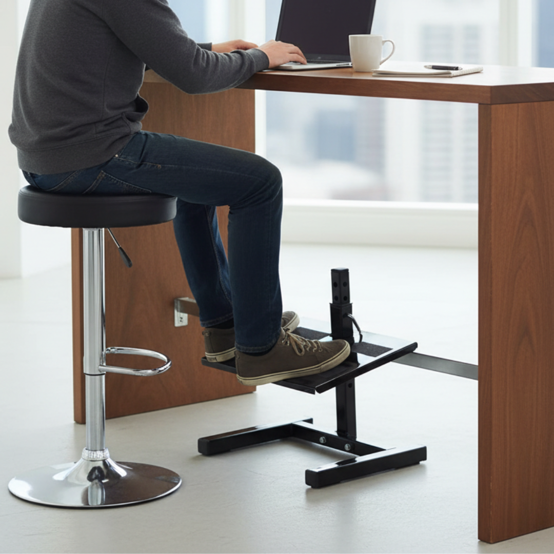 Proporciona al usuario el descanso de los miembros inferiores elevando los muslos a un ángulo de aprox. 95° en relación al tronco. Posiciona las rodillas a la misma altura o ligeramente por encima de la articulación de la cadera, evitando la compresión de la parte posterior de los muslos dejando la libre circulación de la sangre. Permite la correcta posición al sentarse, manteniendo la columna apoyada en el respaldo de la silla.
