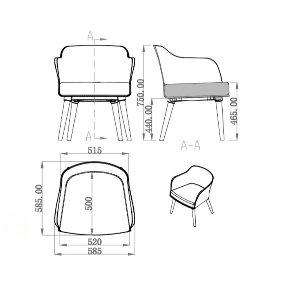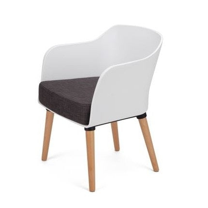 Estructura en polipropileno de alta resistencia color gris grafito. Tiene un cojín desmontable de espuma de alta densidad de 10 cm de espesor tapizado en lana gris. Base 4 patas de madera torneada y barnizada. Ideal para usar en espacios colaborativos y salas de espera.