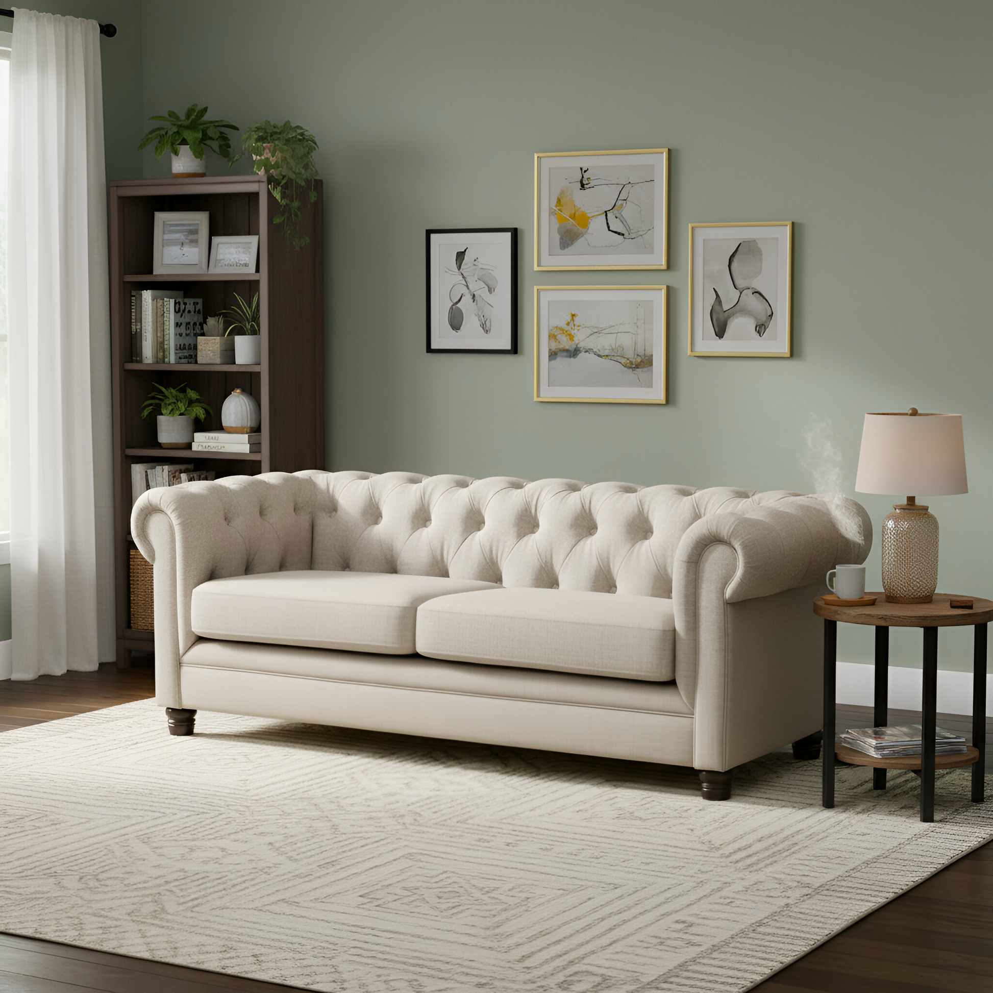 Este sofá de estilo tradicional aporta distinción y calidez, siendo perfecto para quienes valoran el diseño atemporal y la calidad en cada costura.