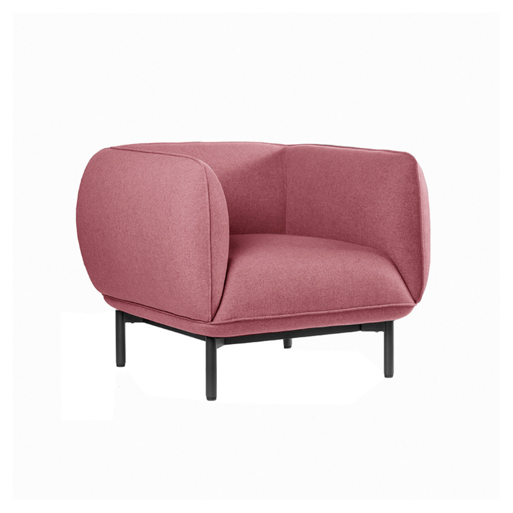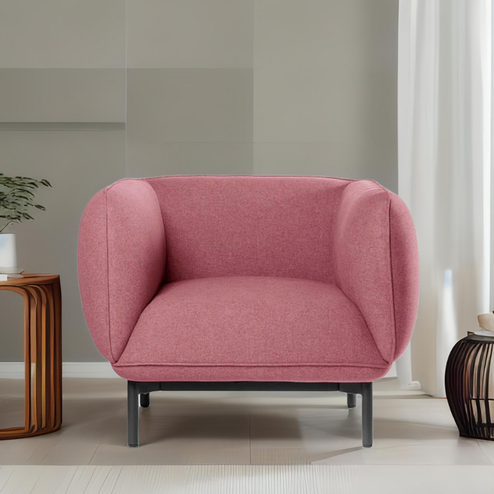 Sofá Sevilla de 1 cuerpo 100% tapizado en color rojo, de diseño amplio y elegante que llena de forma única todos los espacios. Estructura cuatro patas de metal color negro. Producto armado, listo para su uso.
