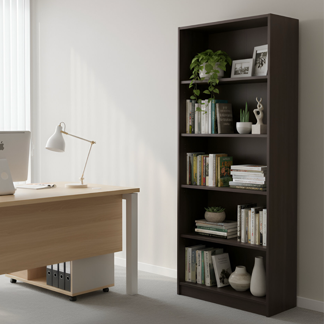 Mueble RTA, estructrura en melamina de 15mm color Dakar, con tapacantos en Pvc, se entrega desarmado y embalado en caja de cartón con sus respectivos herrajes e insructivo de armado. 6 bandejas fijas. Método de unión con tarugos, mini fix y adhesivo. Ideal para guardar archivadores. Dificultad armado: Bajo.