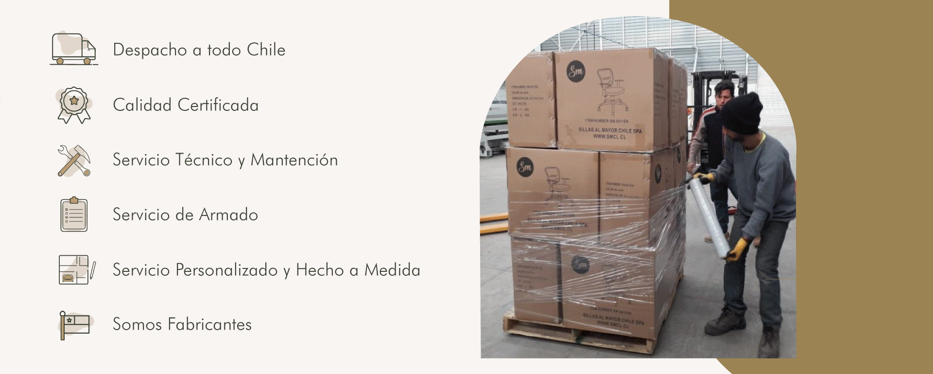 Los gastos de envío para nuestros productos deben ser cancelados por el cliente al momento de la compra y dependerán del tamaño y peso del producto como también la zona geográfica donde se envíe. SM CHILE – SILLAS Y MUEBLES tiene una cobertura de despacho que incluye a las principales ciudades dentro de Chile pero no contempla despacho a zonas rurales o extremas por el alto costo que involucra para el cliente en el precio final del producto.