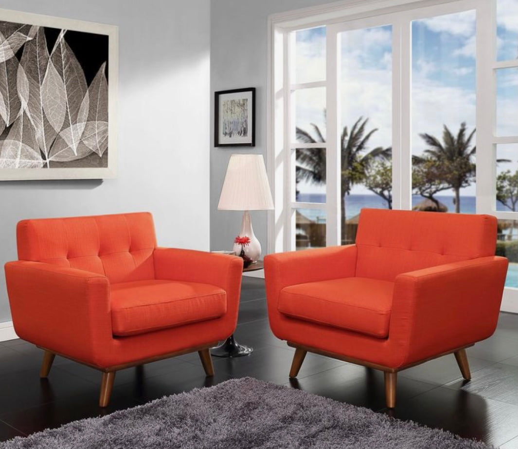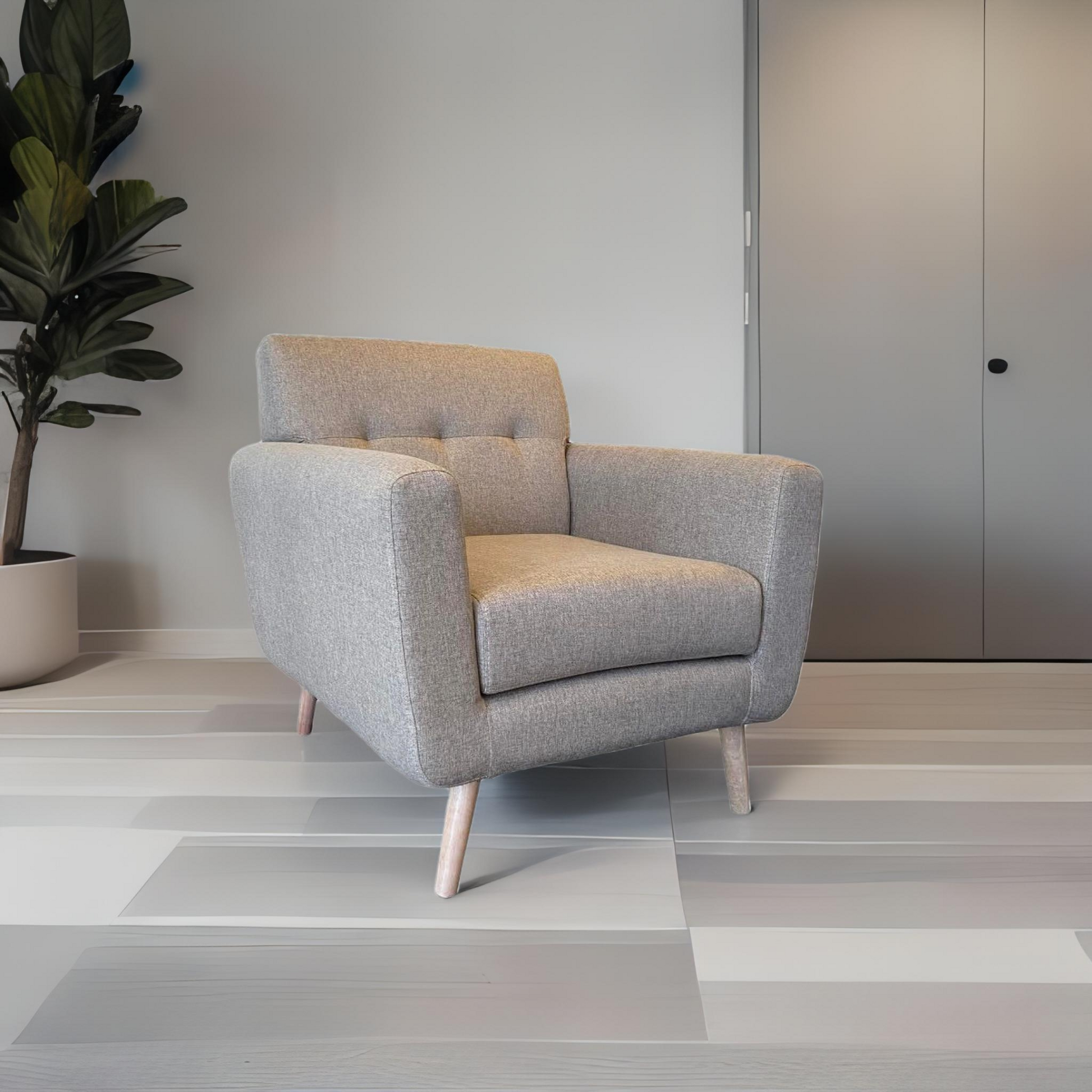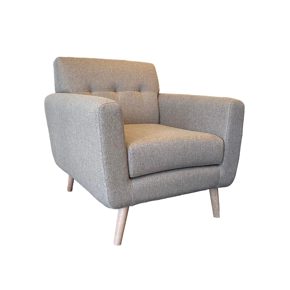 Tiene un diseño retro. Su estructura interna está fabricada en madera pino y terciado de 15 mm. Todo revestido con espuma de alta densidad. Cojines desmontables. Base patas de madera torneada barniz natural. Tapiz: Lana. Color a elección.