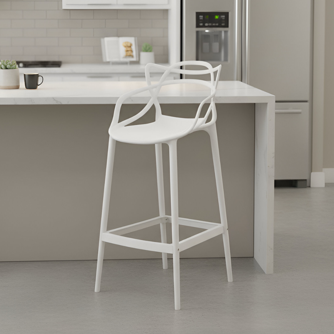 Espectacular taburete Master, ideal para mesones altos o bar. Un estilo elegante que destaca en color negro. Estructura inyectada en fibra de vidrio con Polipropileno. Apilables. Protección UV. Impermeable. Se emplea para uso interior y exterior.